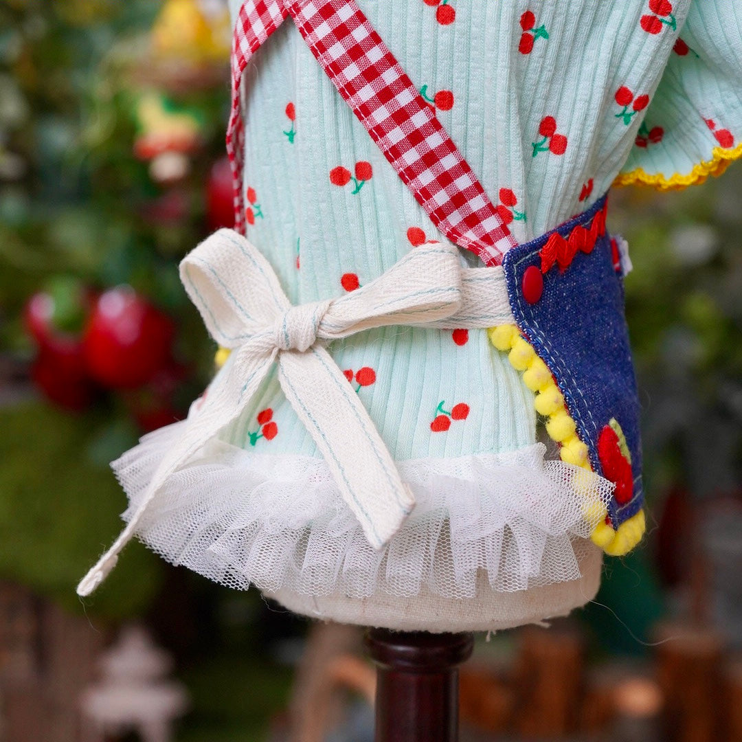 ところどころに施された刺繍のチェリーがとっても可愛いエプロンです。