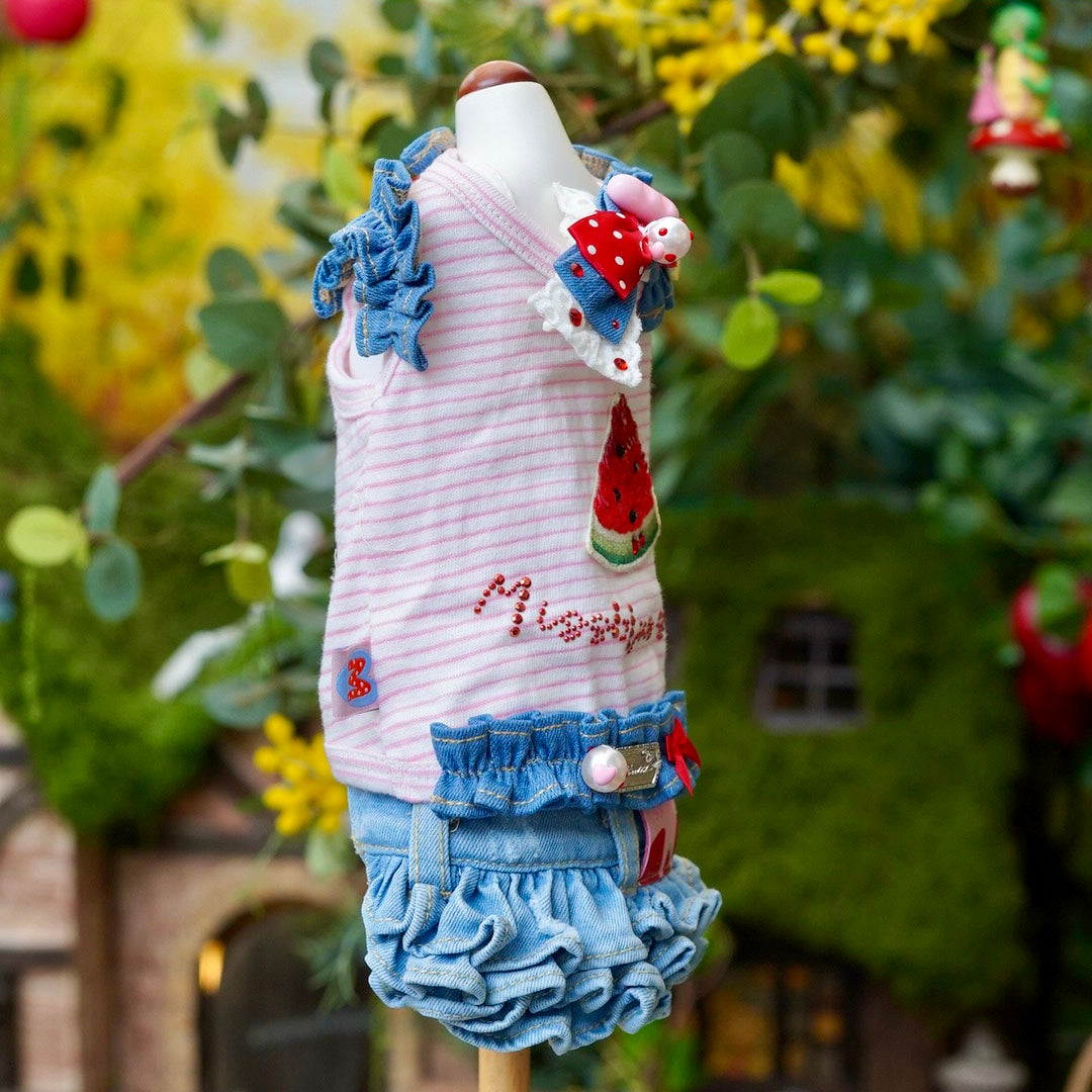 フルーツデニムンワンピース【Miss blue pet】