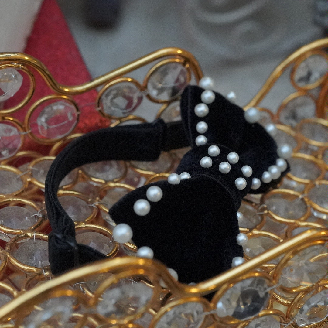 ベロアパール蝶ネクタイ【OROKU デニムリボン】