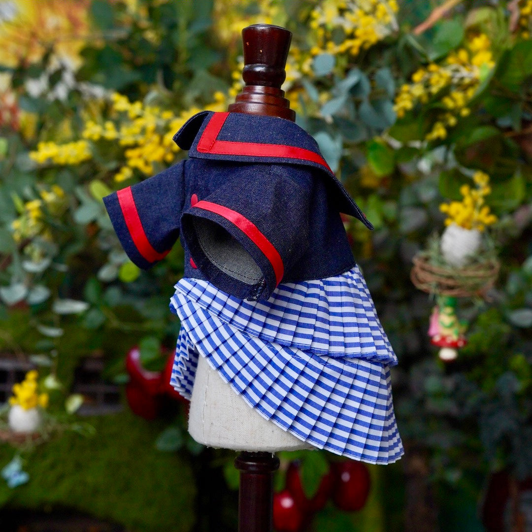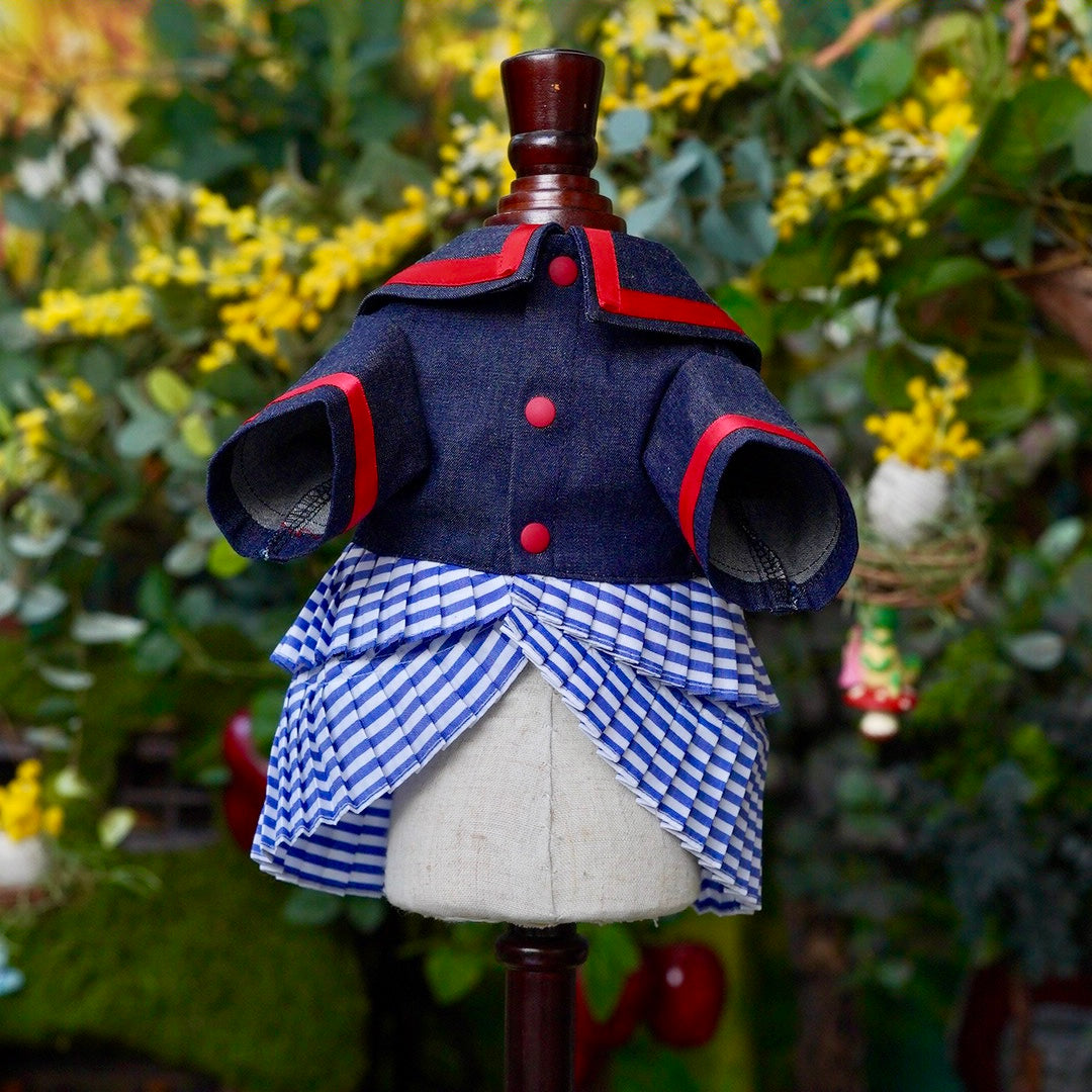 薄手のデニム素材にセーラーカラーを組み合わせたデザインが、爽やかで軽やかな印象を与えます。