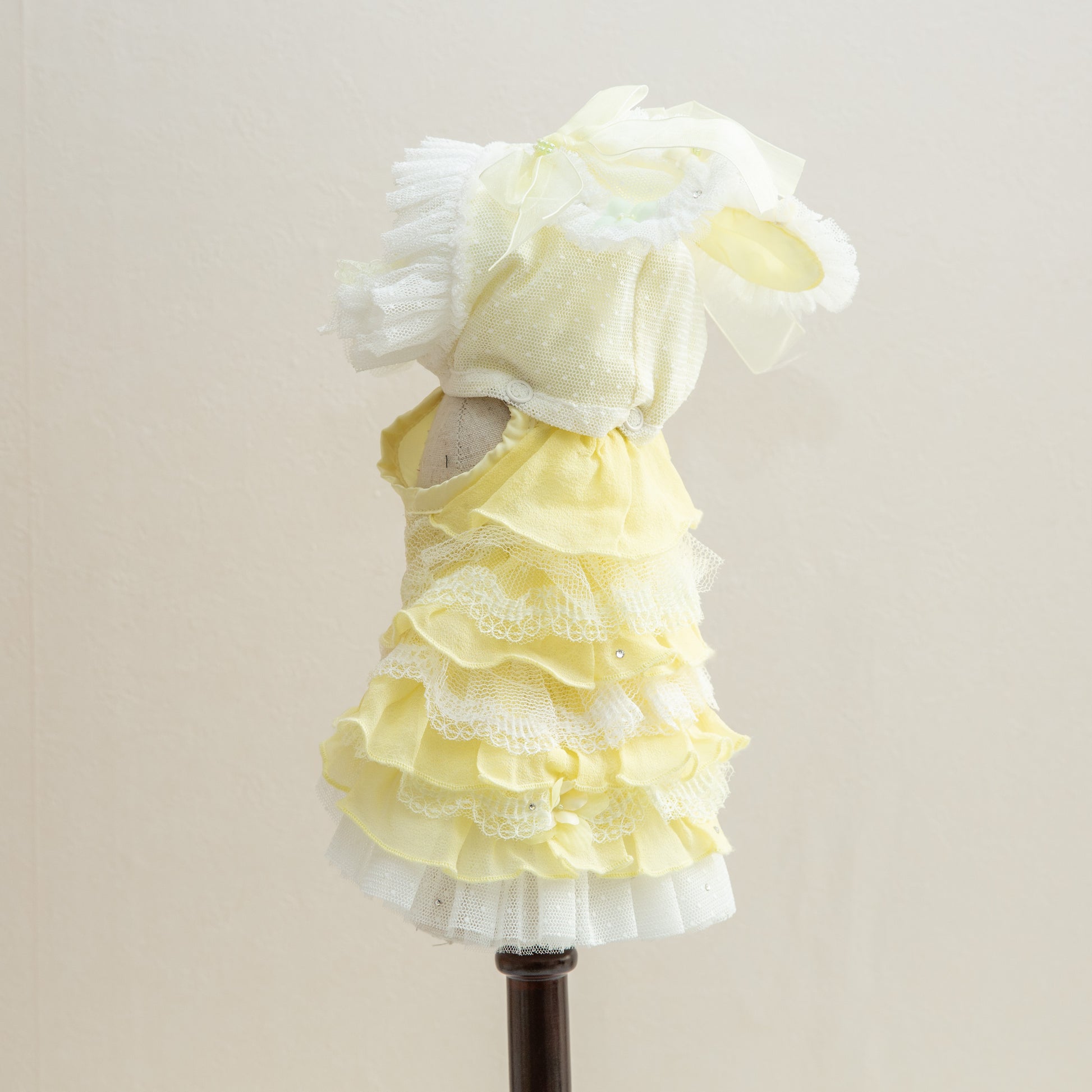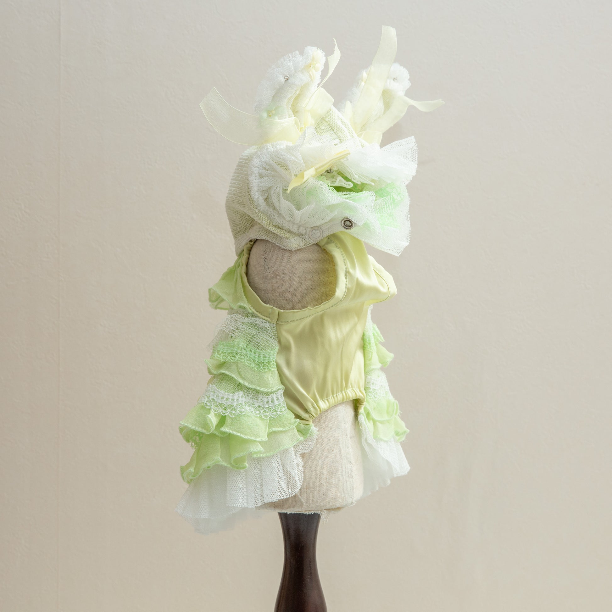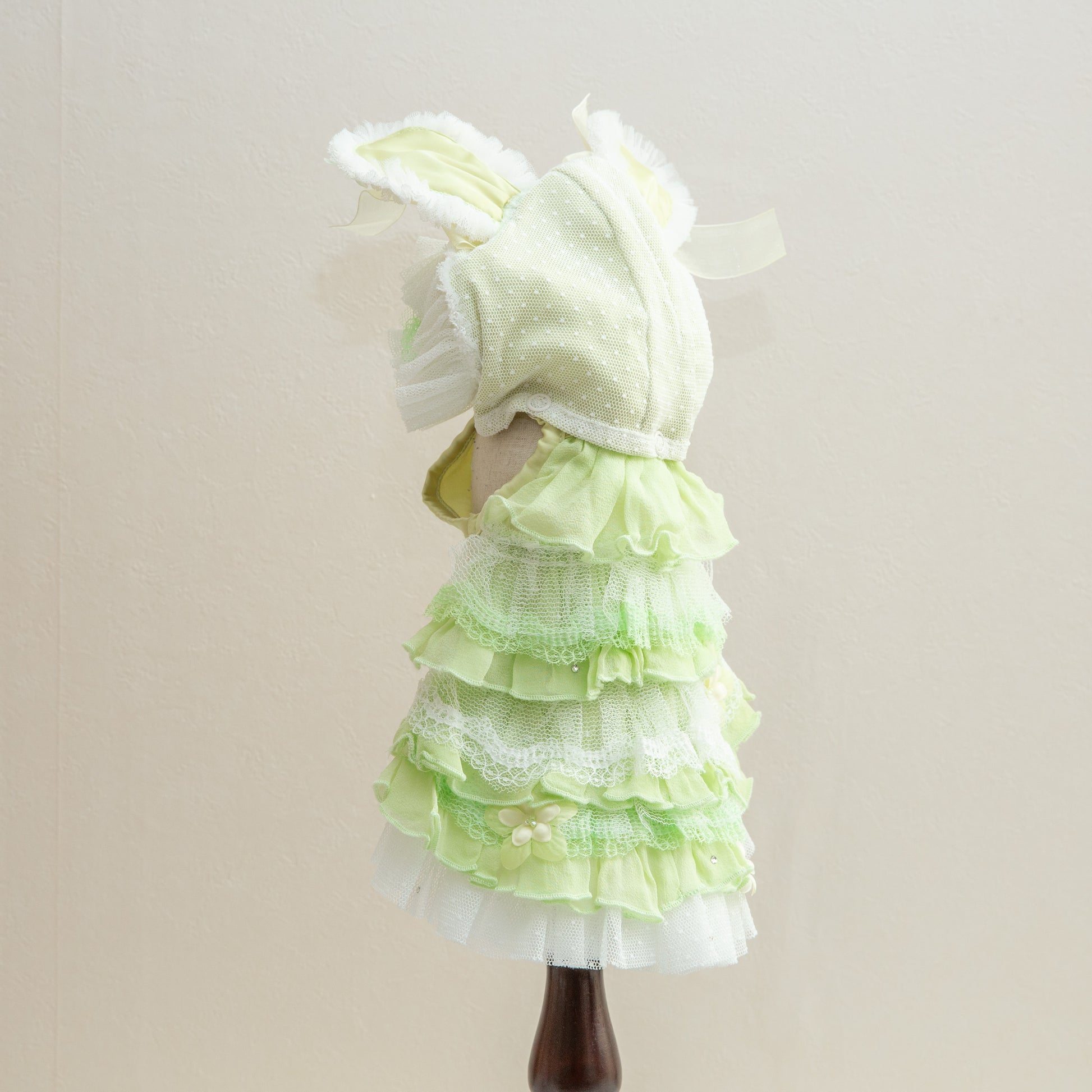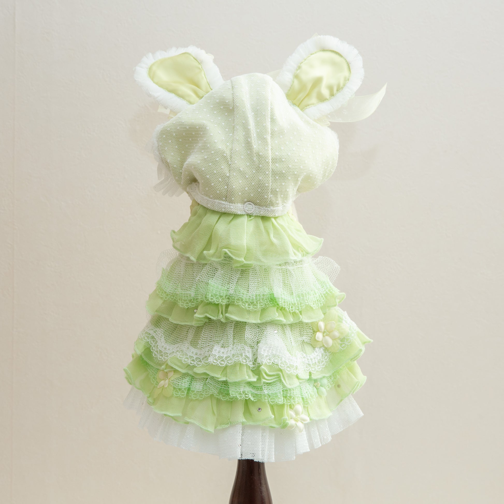 神秘的なブルーカラーでペットを魔法のような世界へ導く服です。妖精のようなエレガントなデザインで、愛するペットを森の主人公に変身させます。