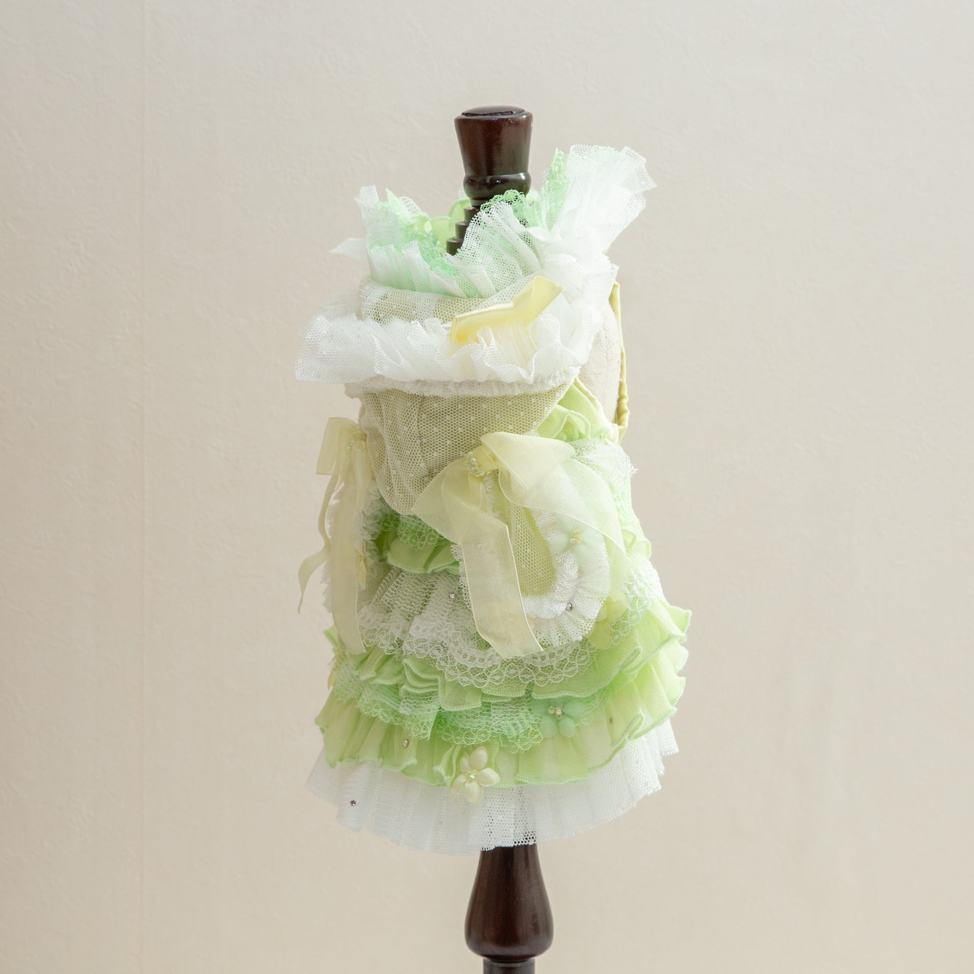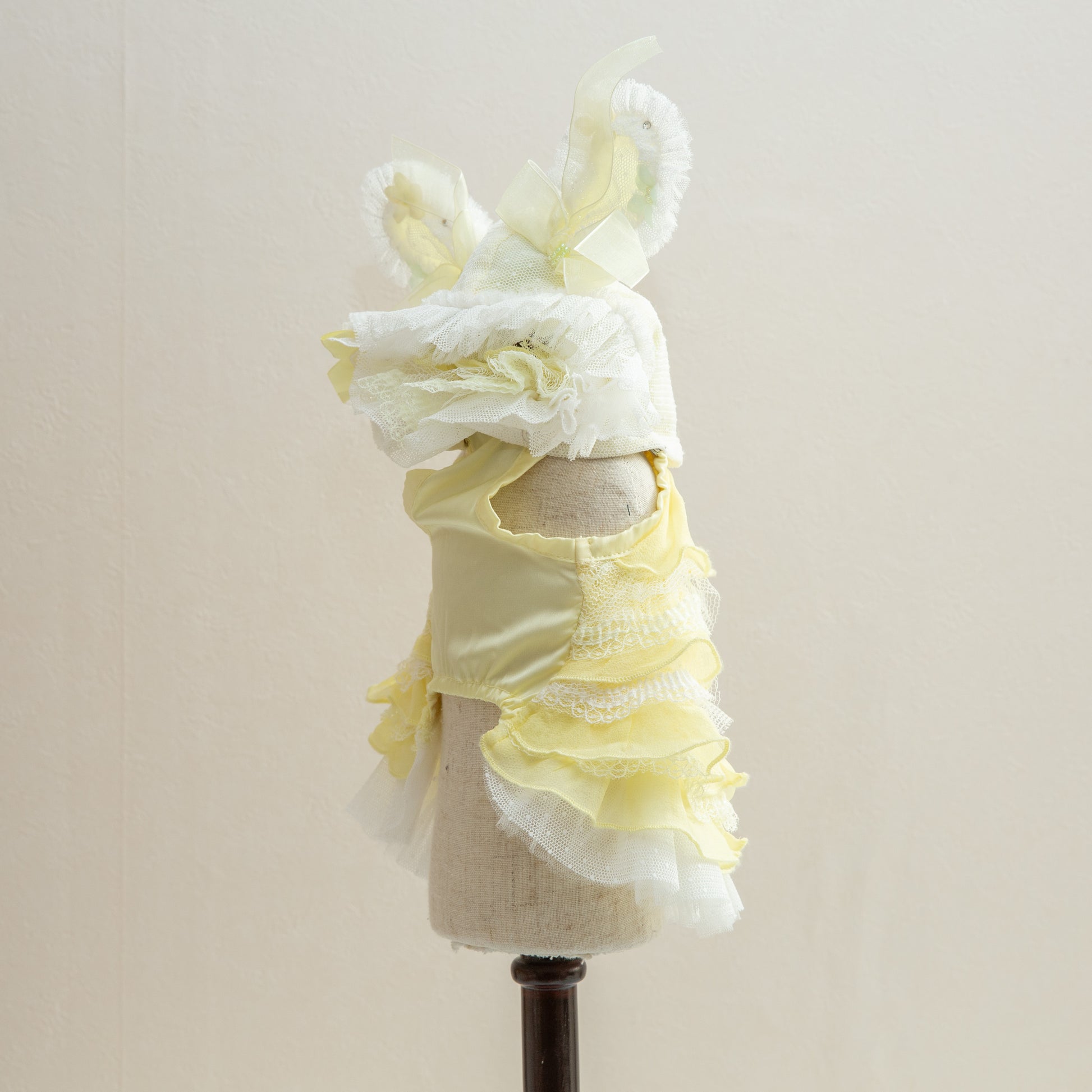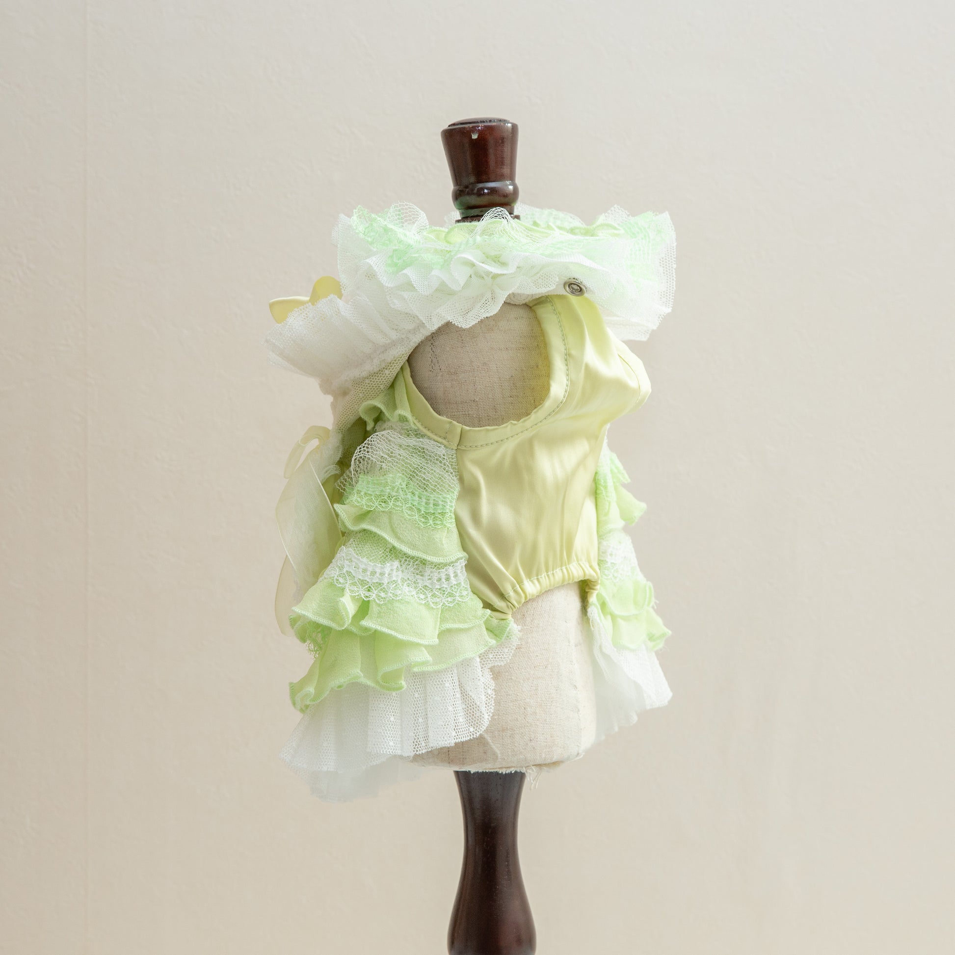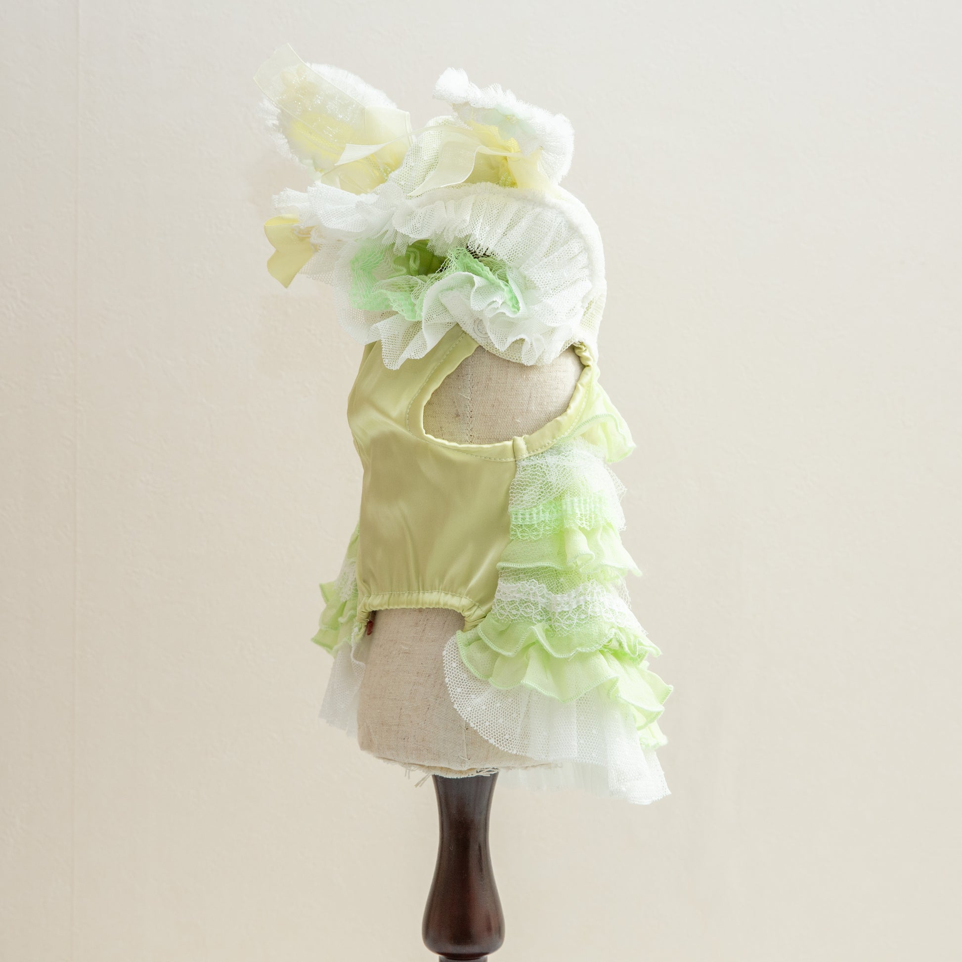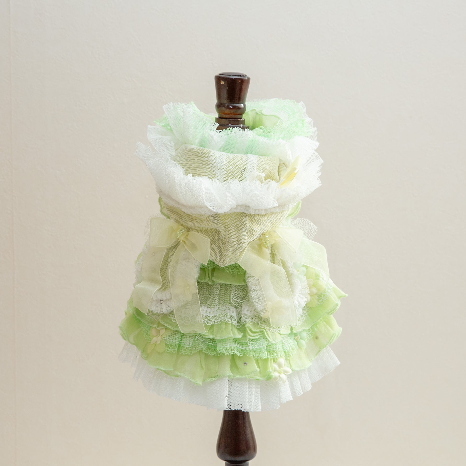 神秘的なブルーカラーでペットを魔法のような世界へ導く服です。妖精のようなエレガントなデザインで、愛するペットを森の主人公に変身させます。