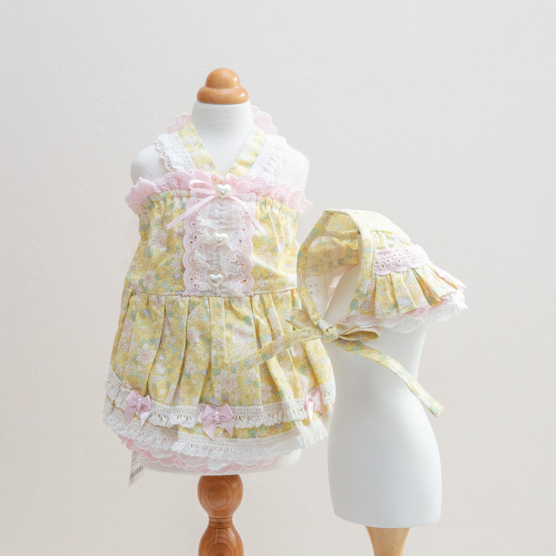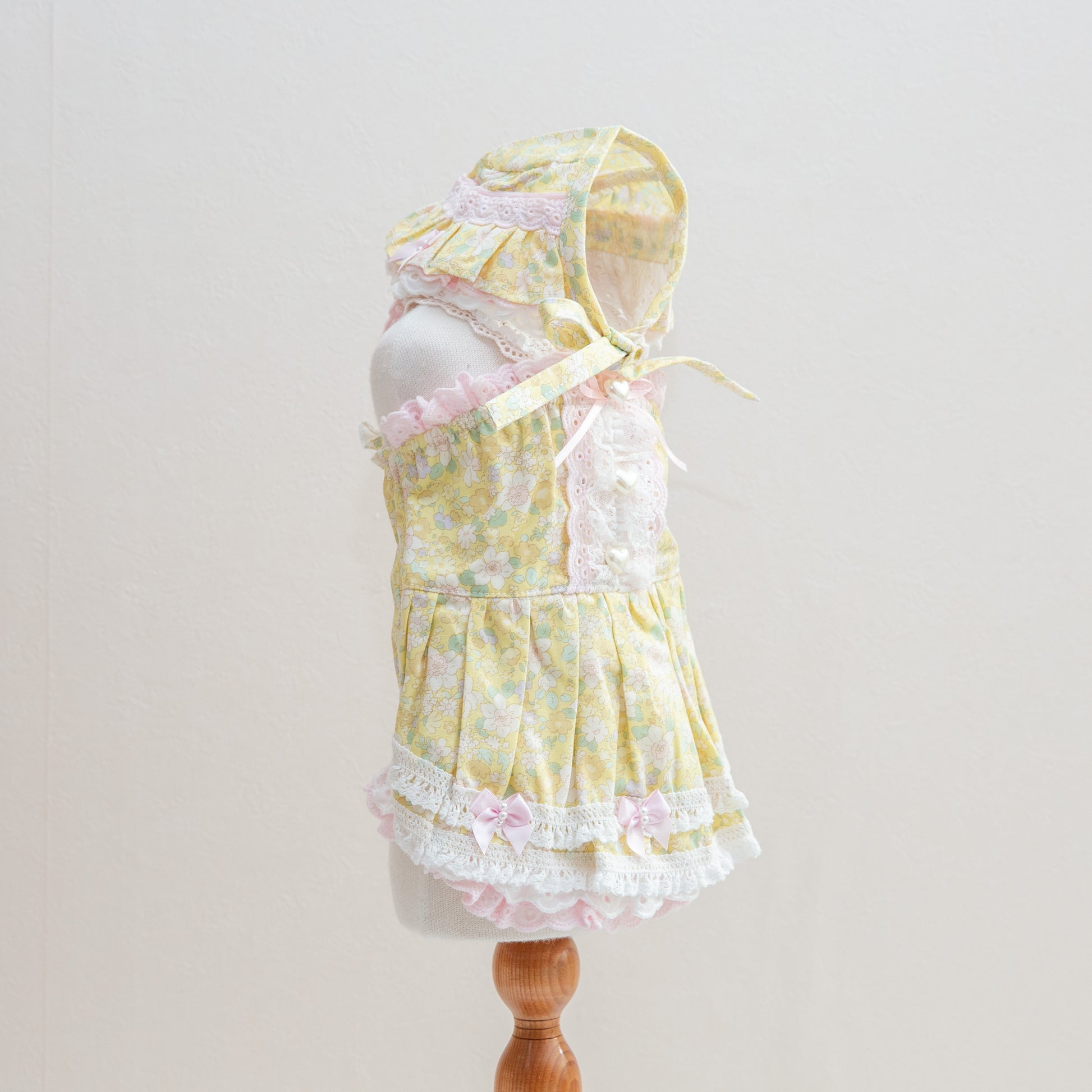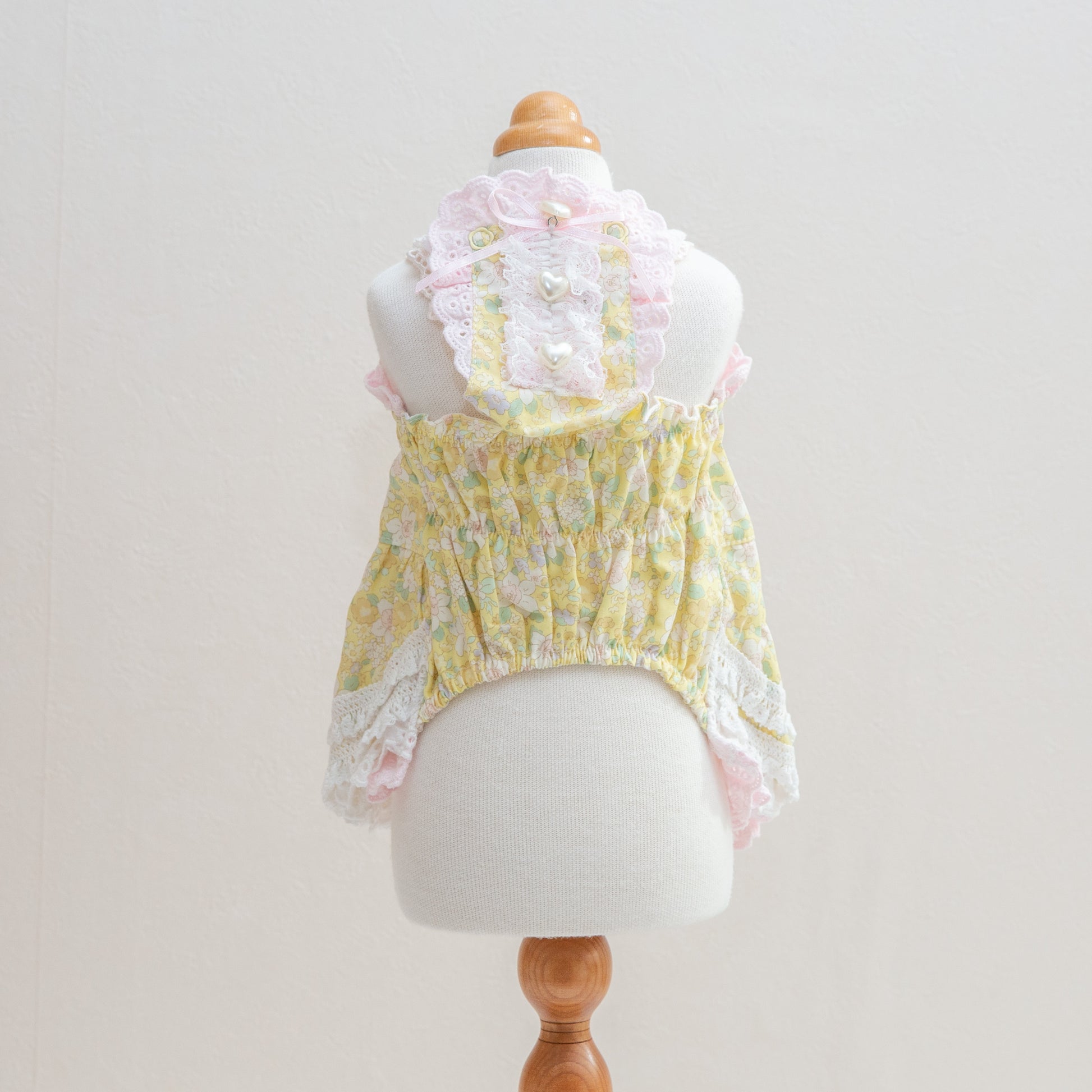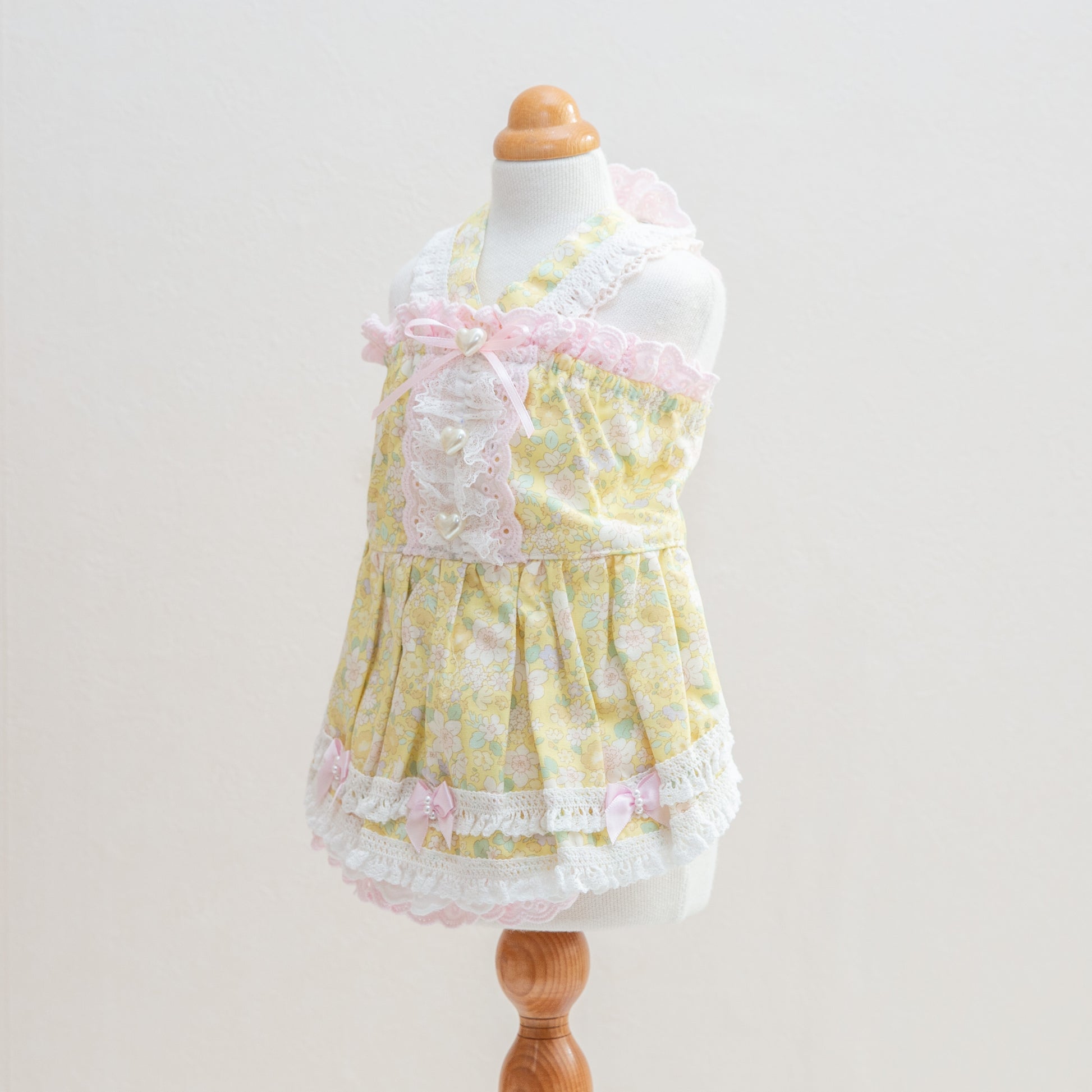 明るく元気なイエローカラーが目を引くワンピースセット。愛犬の個性を引き出す鮮やかな色合いと、着脱しやすい設計が嬉しいポイントです。