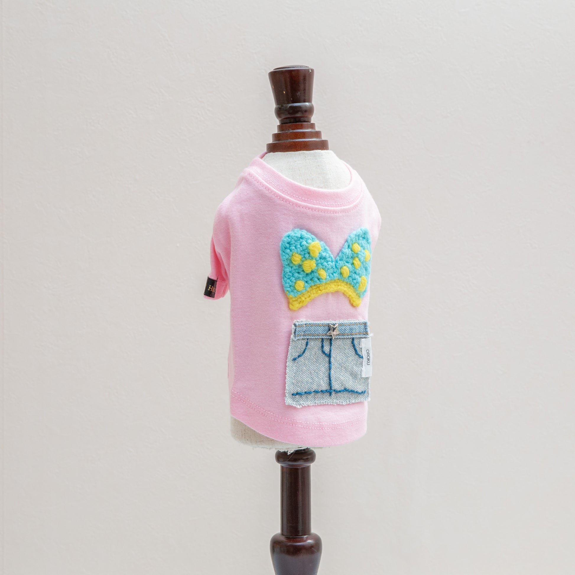 ビキニTシャツ 夏のお出かけを楽しくする、キュートなビキニモチーフのペット用Tシャツ。リゾート気分を盛り上げるポップなデザインです。