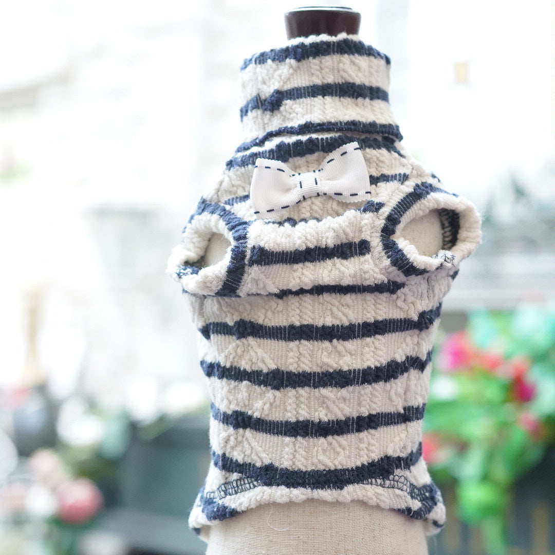 ロンドンボーダーTは、ネイビーとホワイトの爽やかなボーダーデザインが魅力的。シンプルながらも洗練されたスタイルは、あらゆるシーンで活躍します。快適な素材感で着心地も抜群。毎日のコーディネートにさりげない上品さをプラスし、わんちゃんの魅力を引き立てます。この一枚で、スタイリッシュな大人の装いを楽しんでください。