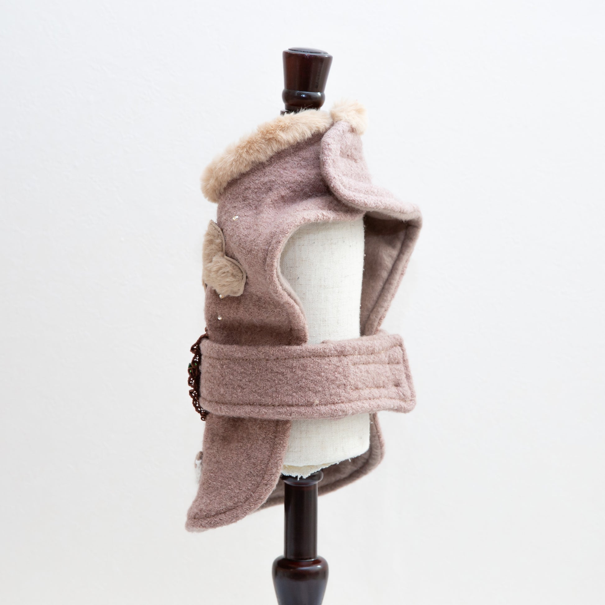 ふわふわのカラーが首元をやさしく包み、淡い色味と立体モチーフがワンちゃんをより愛らしく見せてくれます。