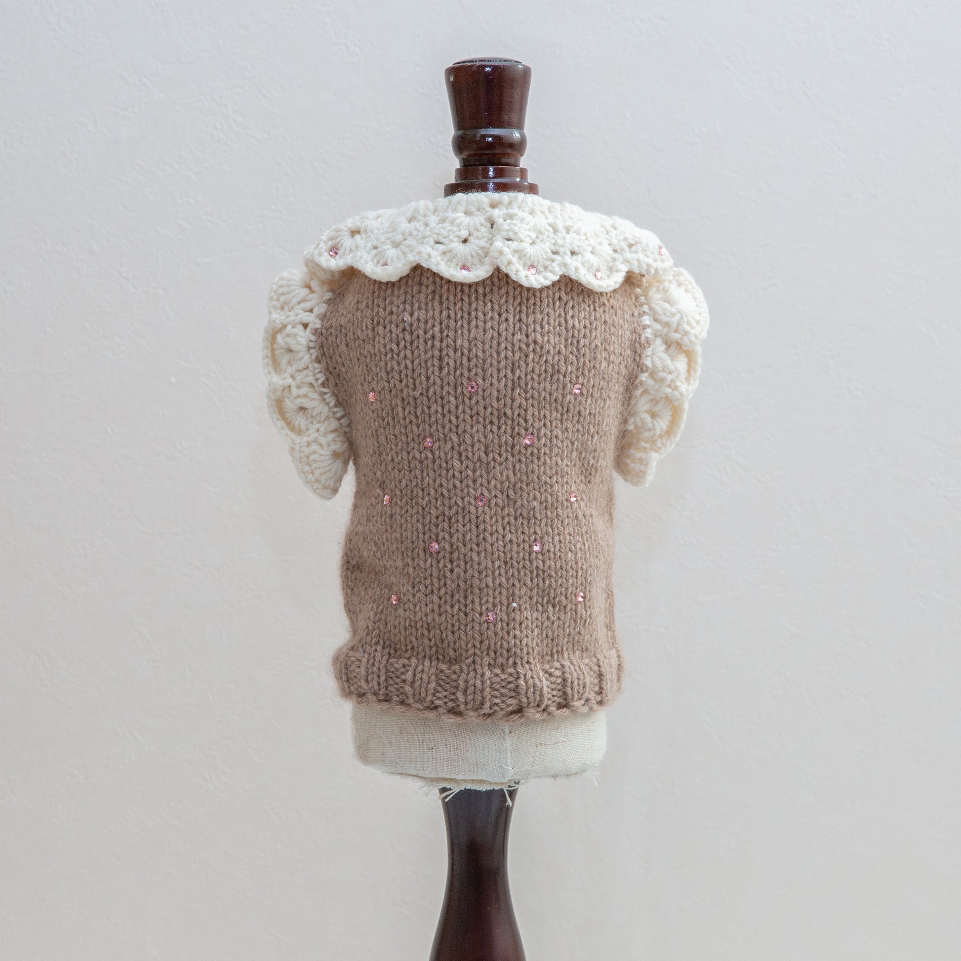 優しい色合いが魅力的なブラウンプルオーバービブ!温かみのある色使いで、どんなシーンにも自然に溶け込みながら、より一層愛らしく見せてくれます。