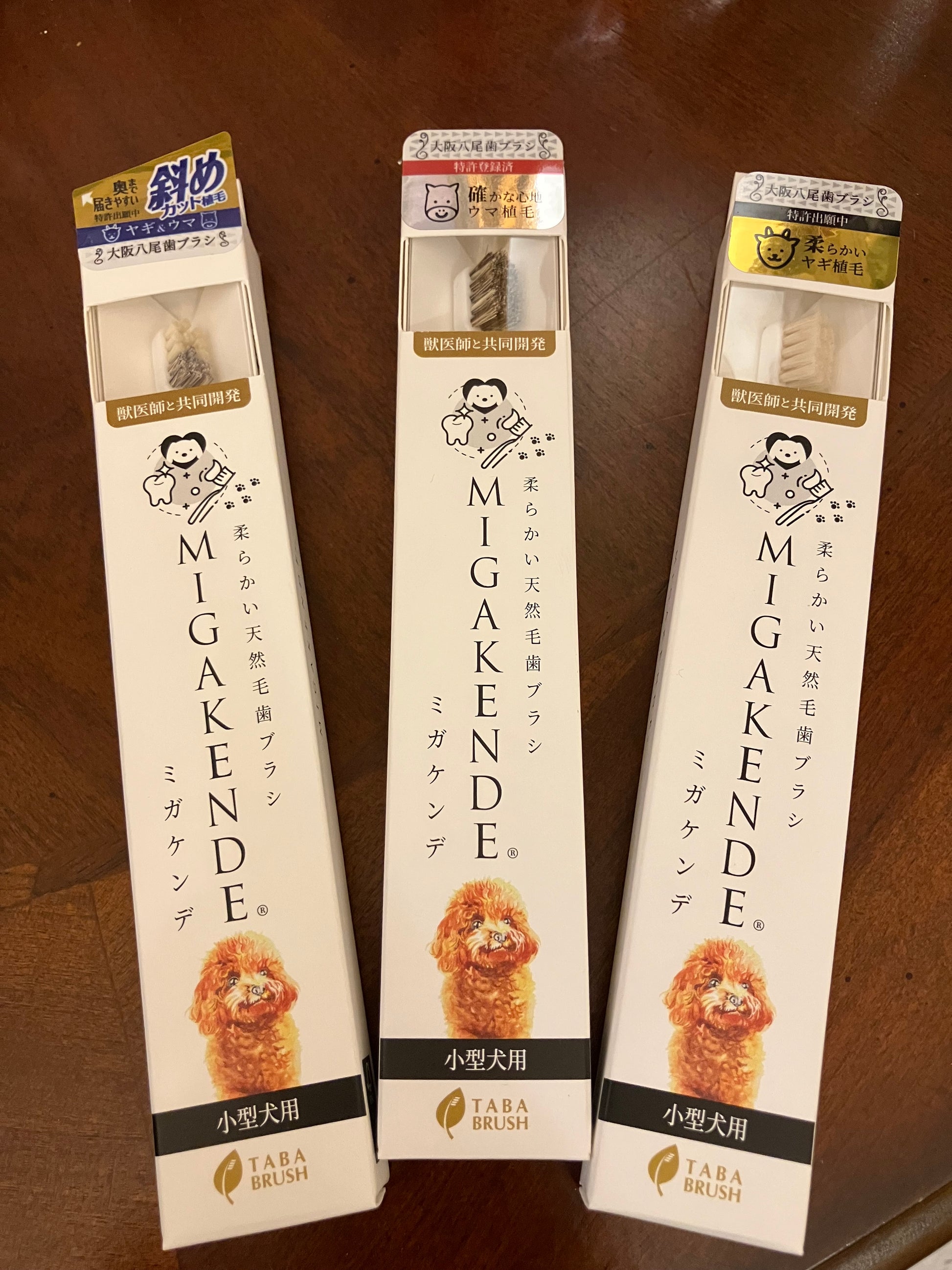 日本製のやぎ毛を使った柔らかい天然毛歯ブラシは、小型犬の優しい歯みがきにぴったり。神の手トリマーNAOさんも太鼓判!ふわっとしたやぎ毛が、ワンちゃんの歯ぐきをいたわりながらしっかりお掃除。毎日のお手入れがもっと楽しく、笑顔も増えちゃいますよ!