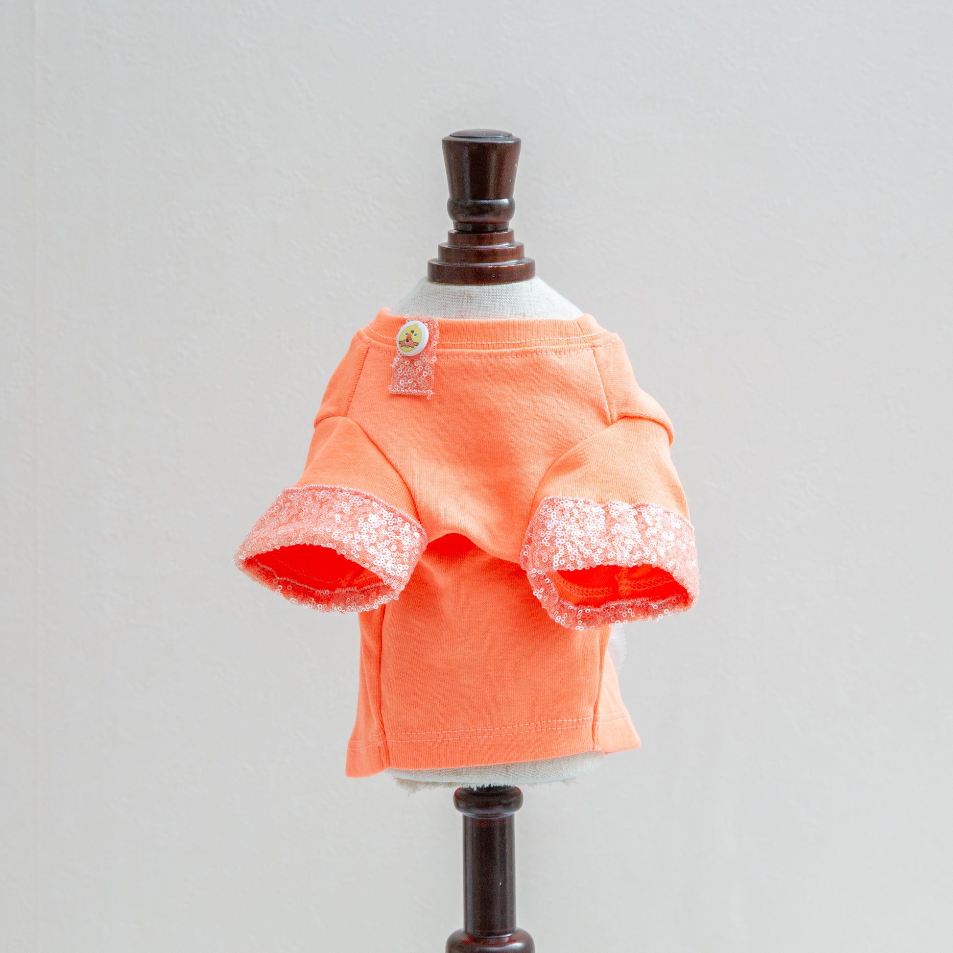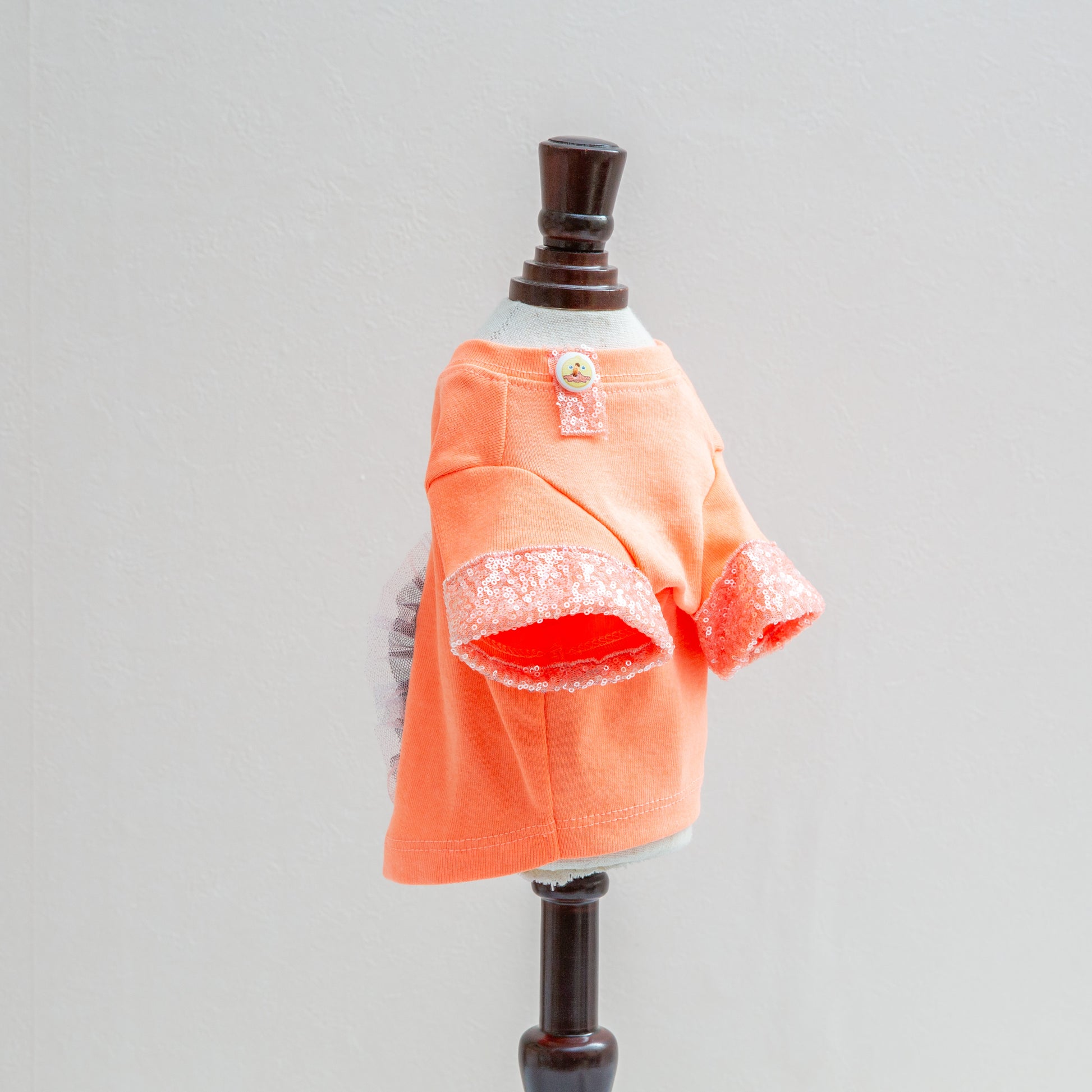 鮮やかなネオンカラーで目を引く、ペット用Tシャツ。ポップで元気いっぱいなデザインです。