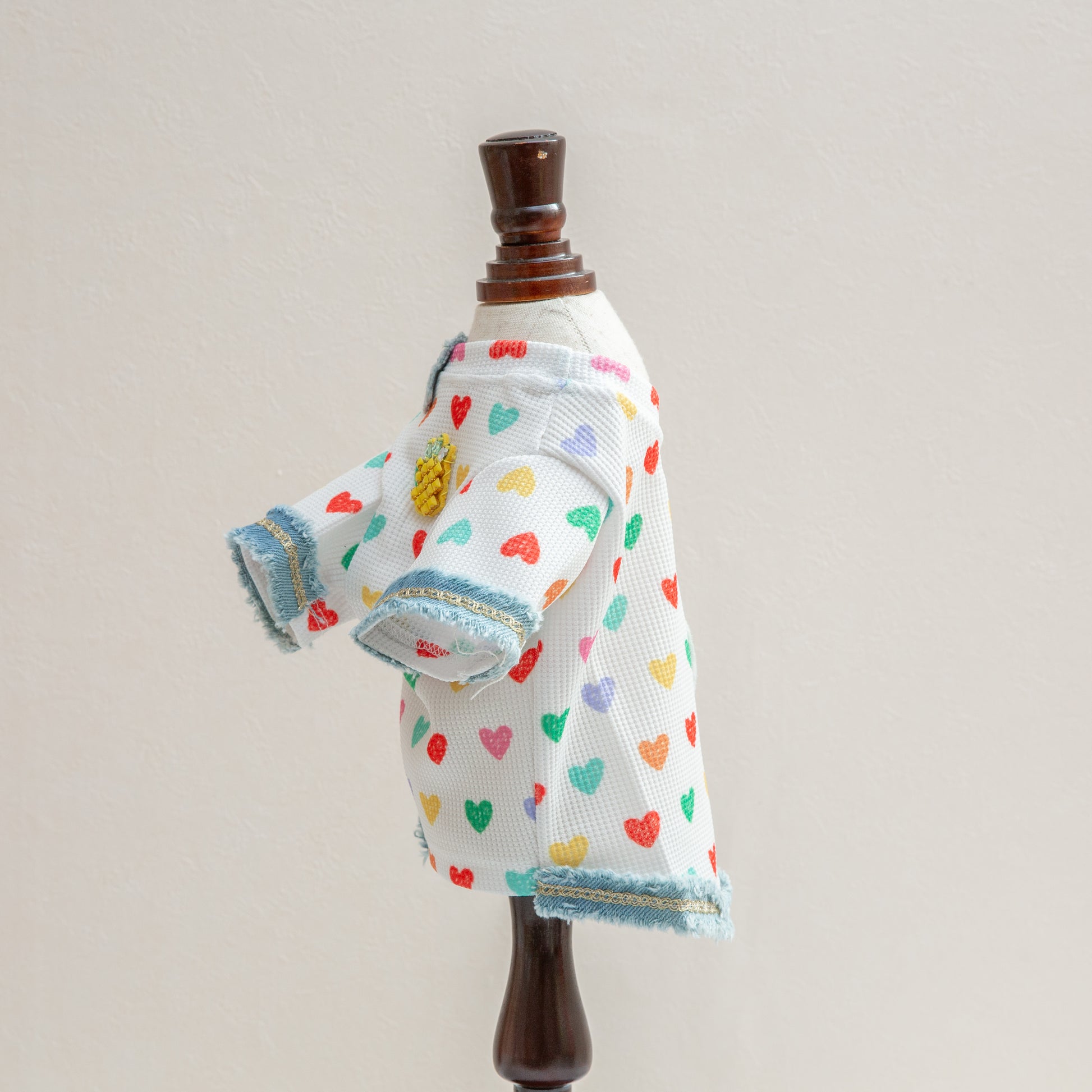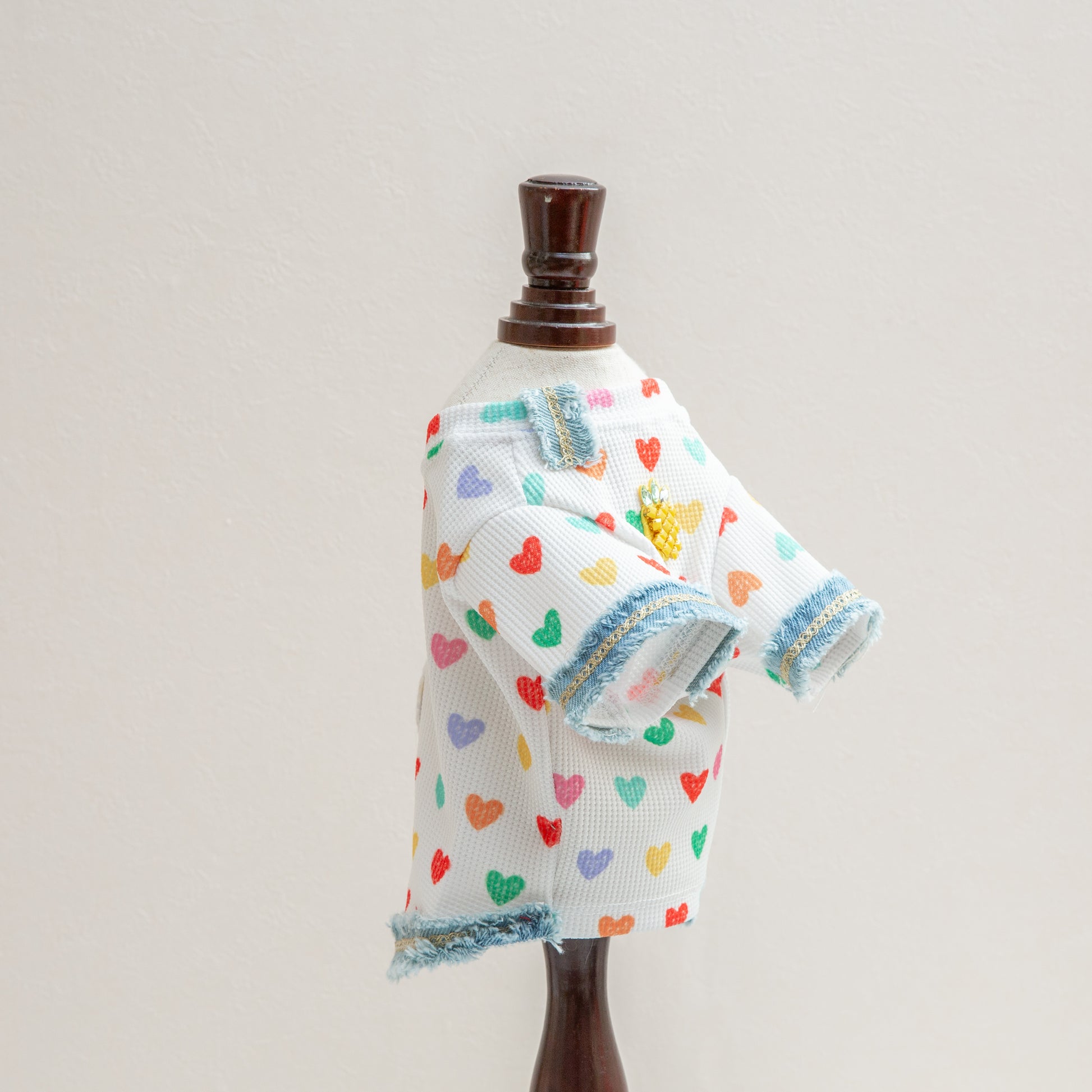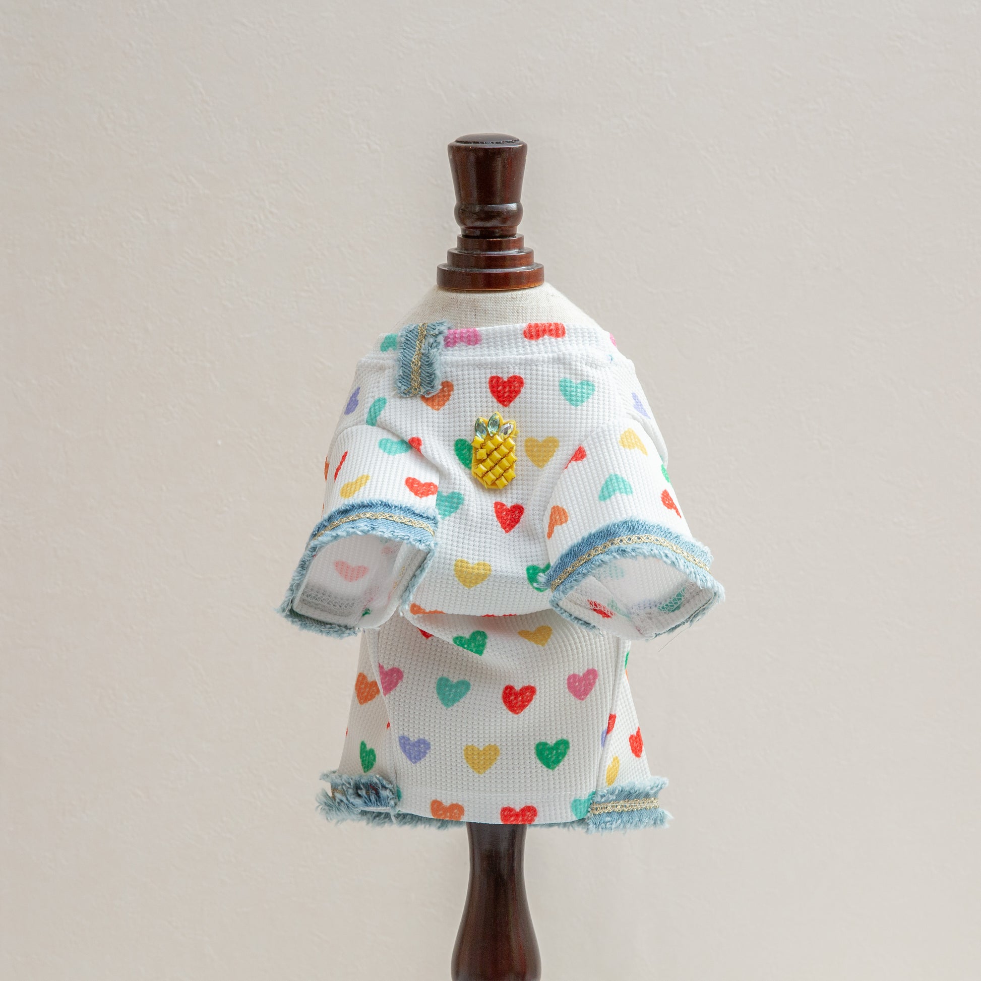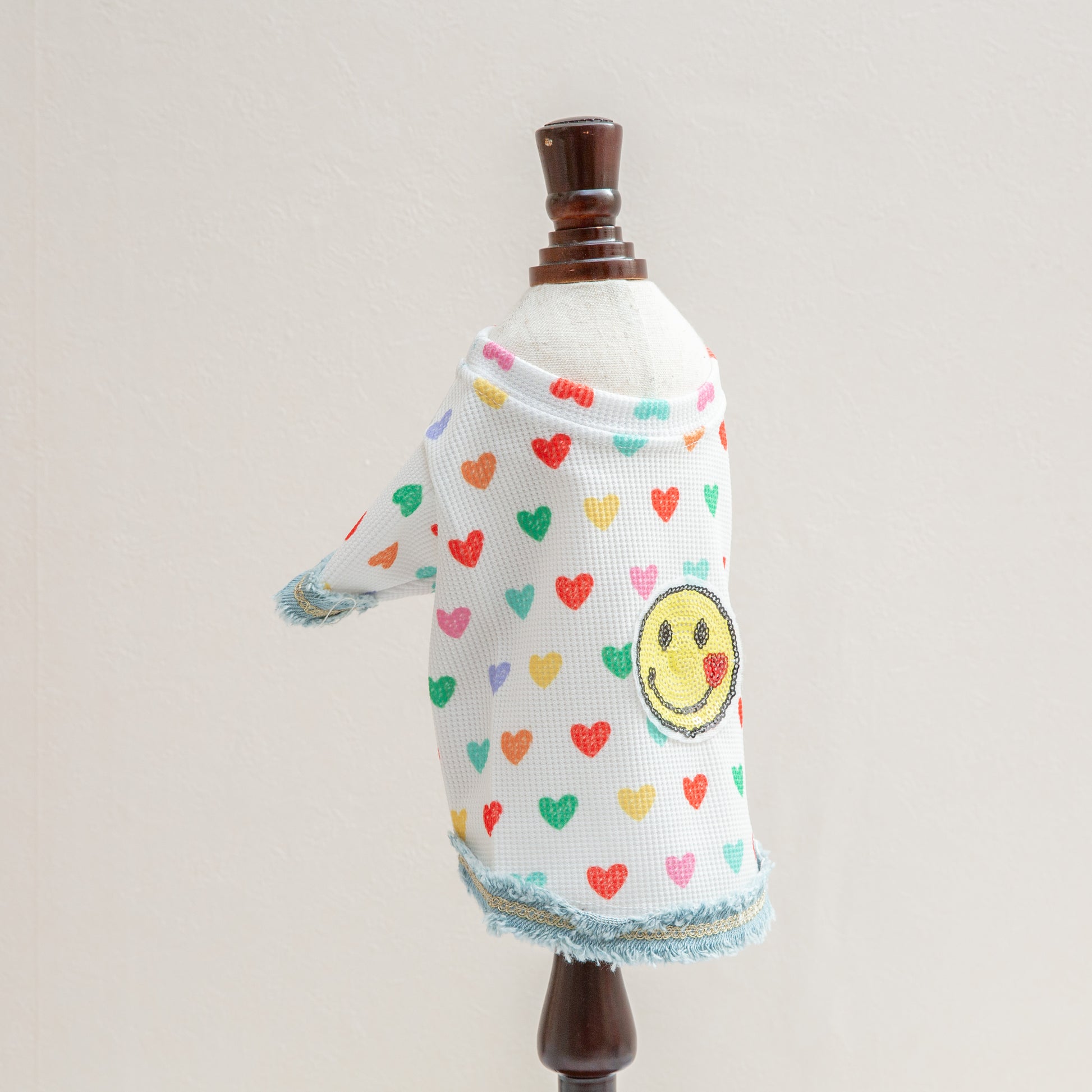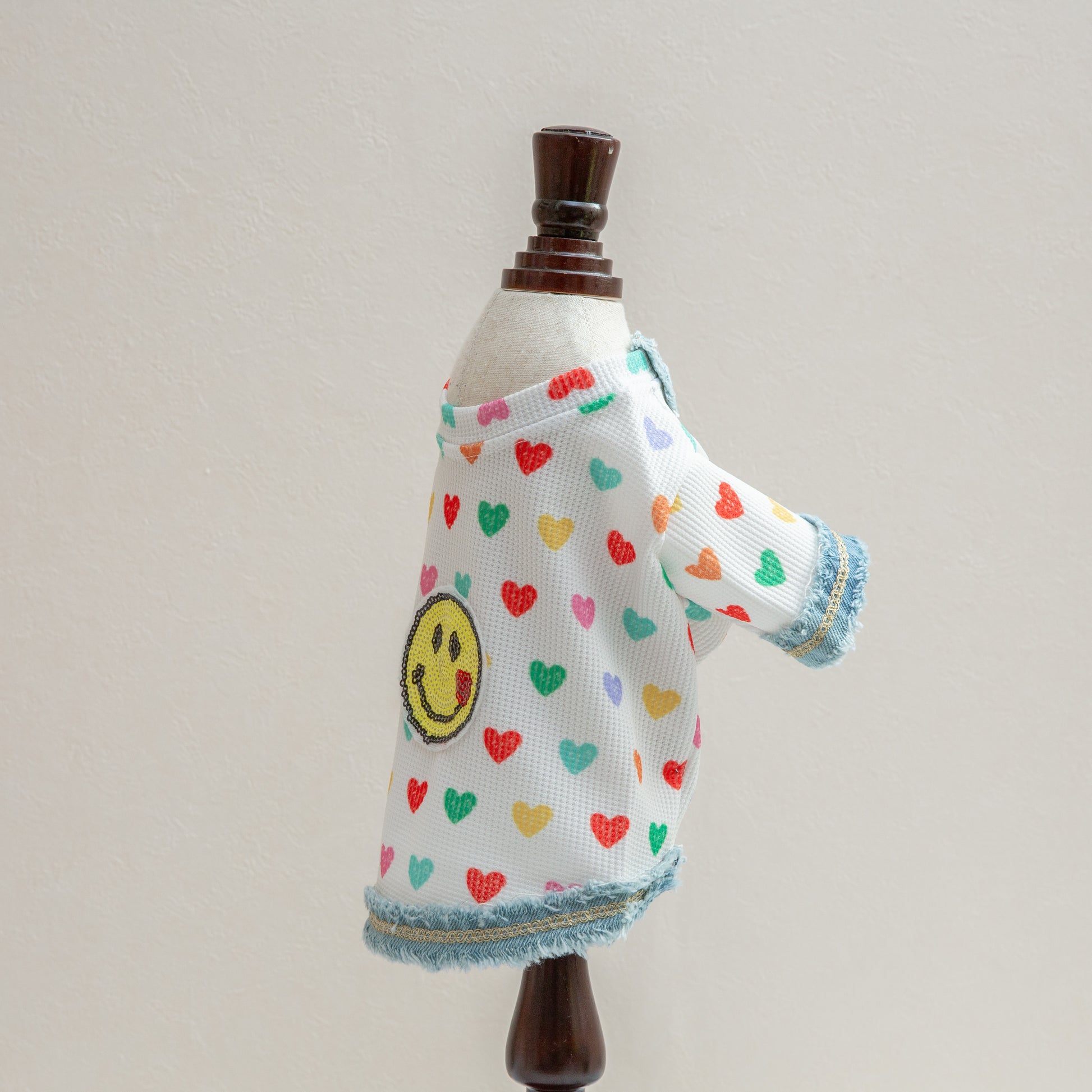 スマイルとハートがいっぱいの、愛らしいペット用Tシャツ。毎日のお散歩からお出かけまで、どんなシーンでも活躍します。